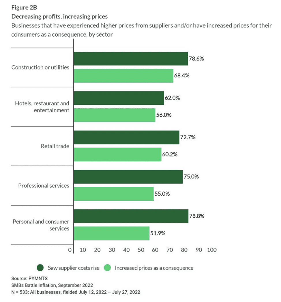 While 56% of those companies reported that they’ve raised client costs in response, they nonetheless seem like absorbing a lot of this inflation in an effort to maintain clients coming again.