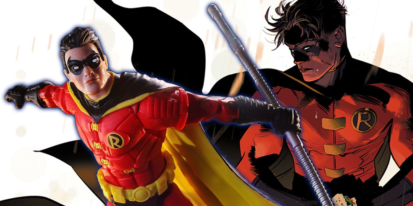 A primary take a look at Drake’s Gold Label determine was revealed on McFarlane Toys’ social media accounts, together with Twitter. The design options Tim’s black, purple and gold Robin outfit (although not the Red Robin swimsuit with the complete cowl) and his bo workers. The collectible might be obtainable solely from Amazon.com.